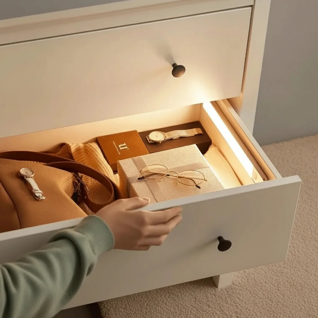 Its slim, modern design fits seamlessly. Perfect for cabinets, closets, or any dark spot.